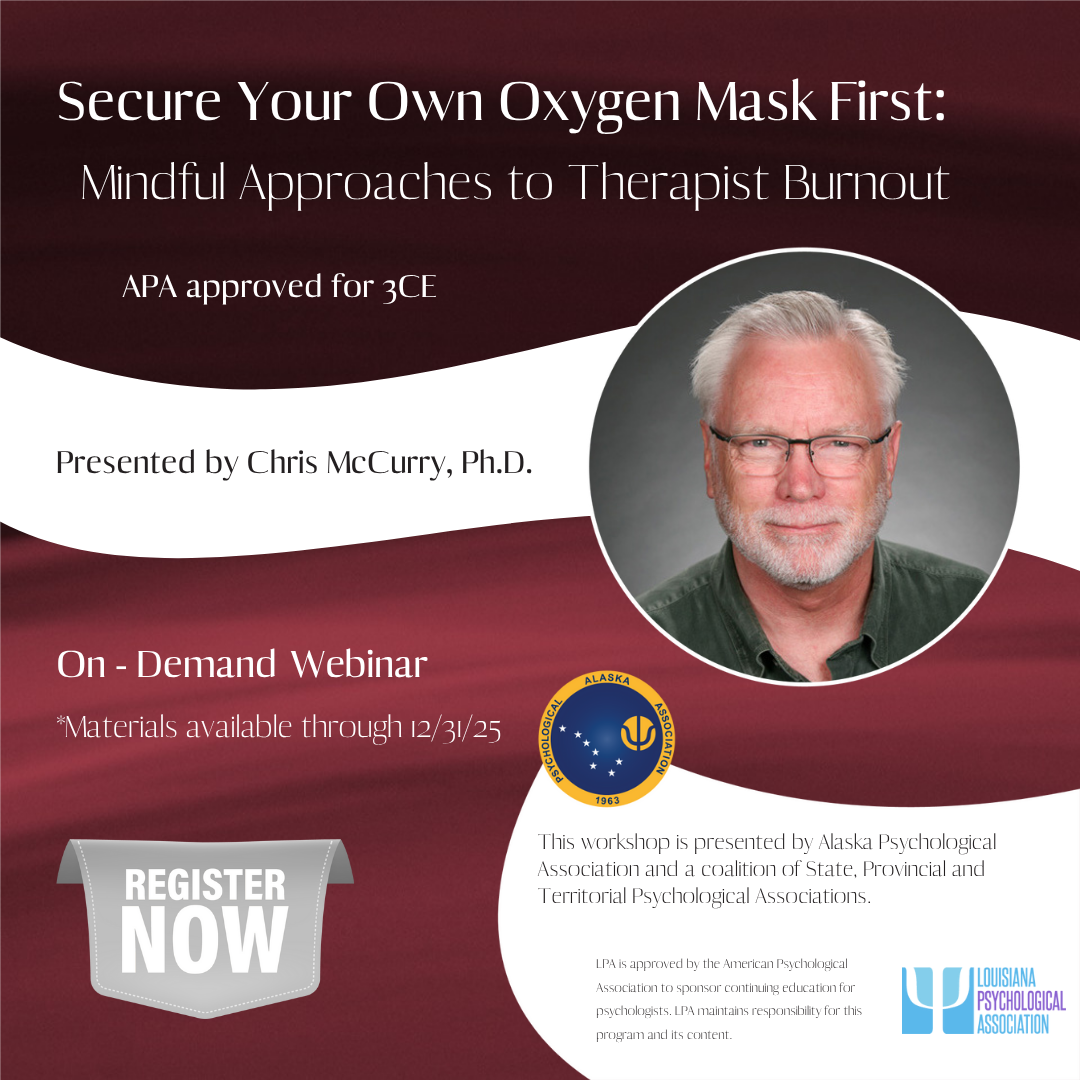 This webinar is being co-sponsored by LPA and a coalition of other state psychological associations and is organized by the Alaska Psychological Association.